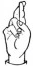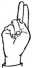 На ћирилици написано ХАНА ЈОВАНЧЕВИЋ састоји се из 14 слова [?]. Исписано ћириличном једноручном азбуком за глувонеме: